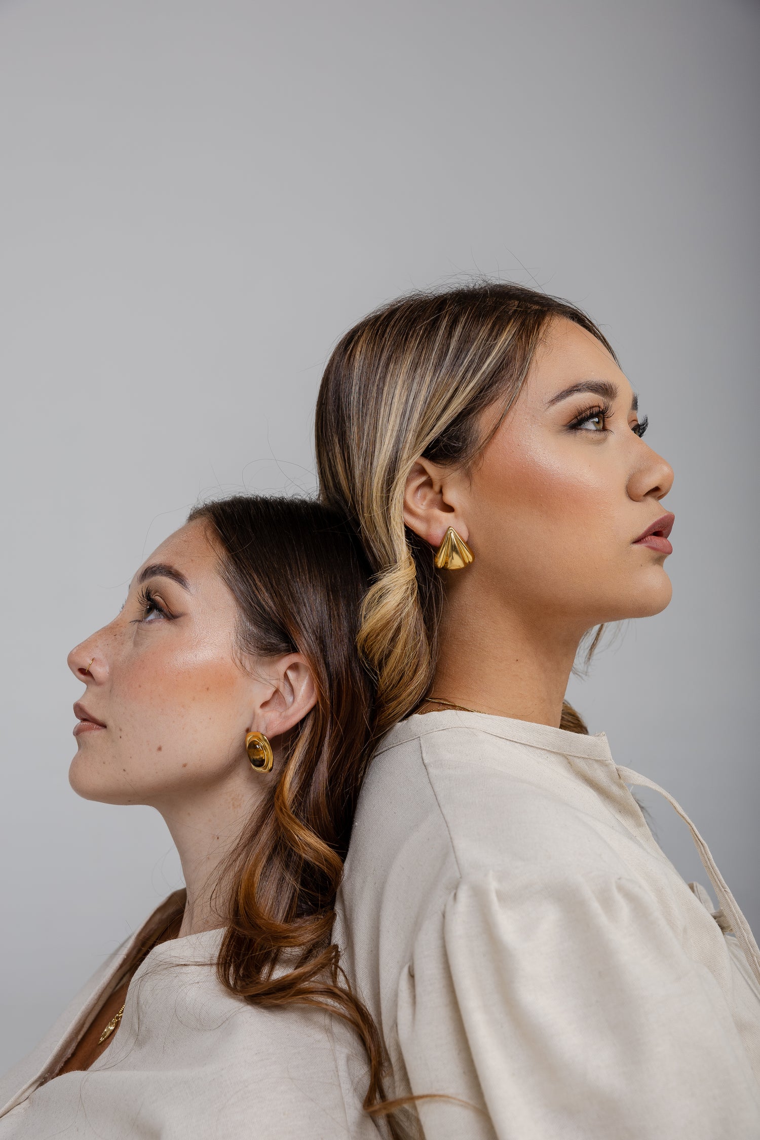 Huggies earrings are smaller and fit snugly against the earlobe, while hoop earrings are larger and circle around the entire ear.